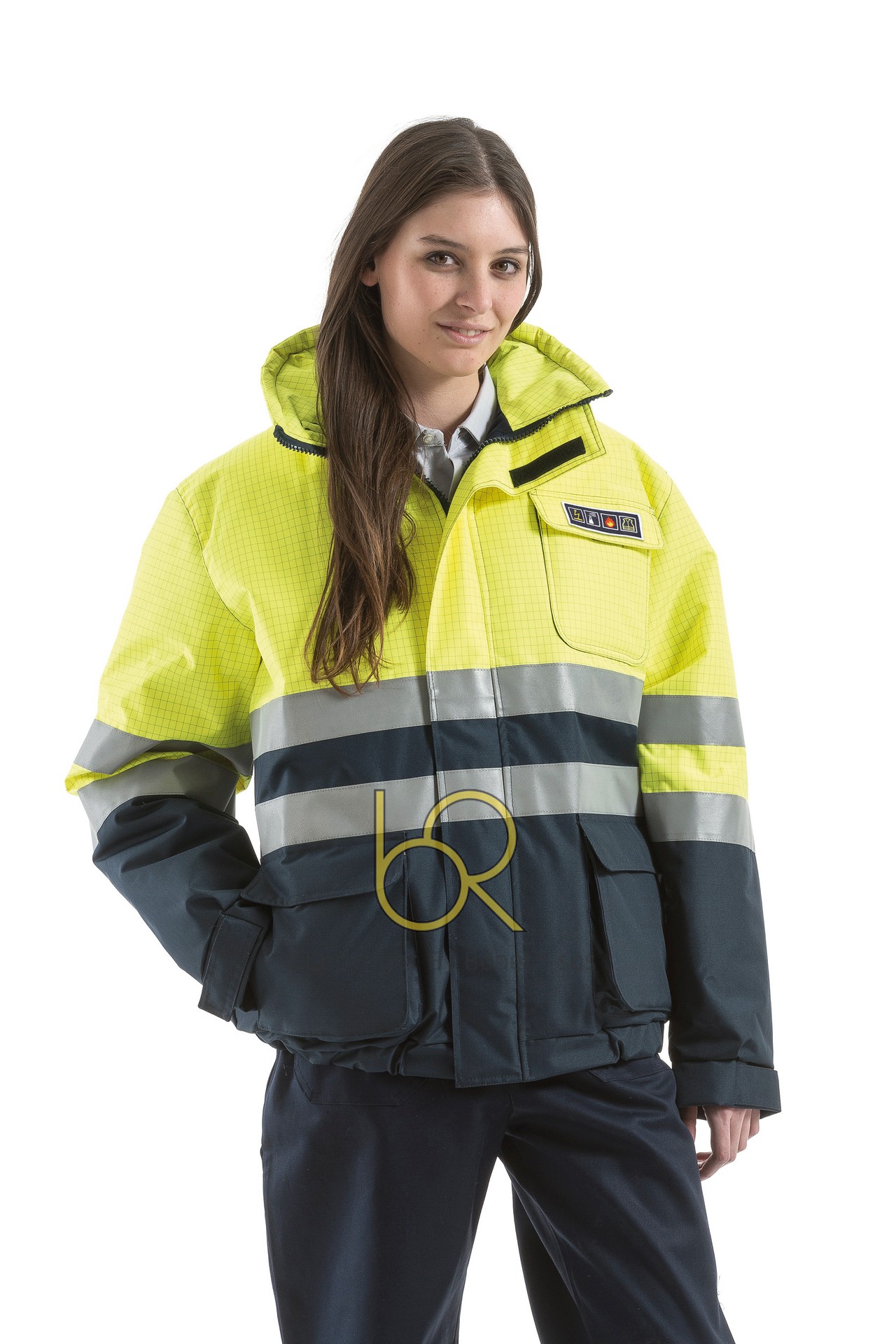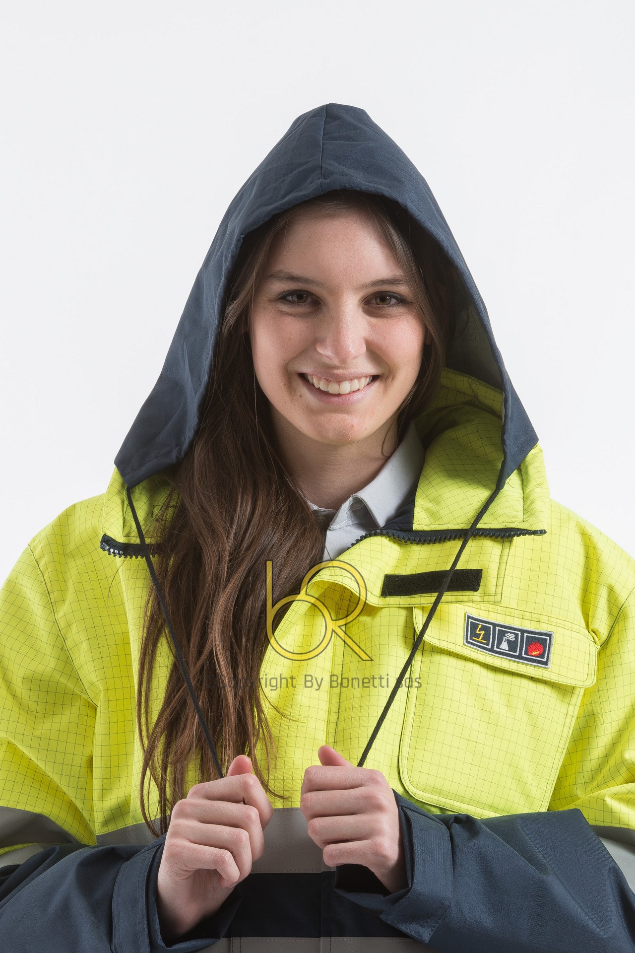 - Tessuto: Poliestere + membrana PU, Fibra Dissipativa.