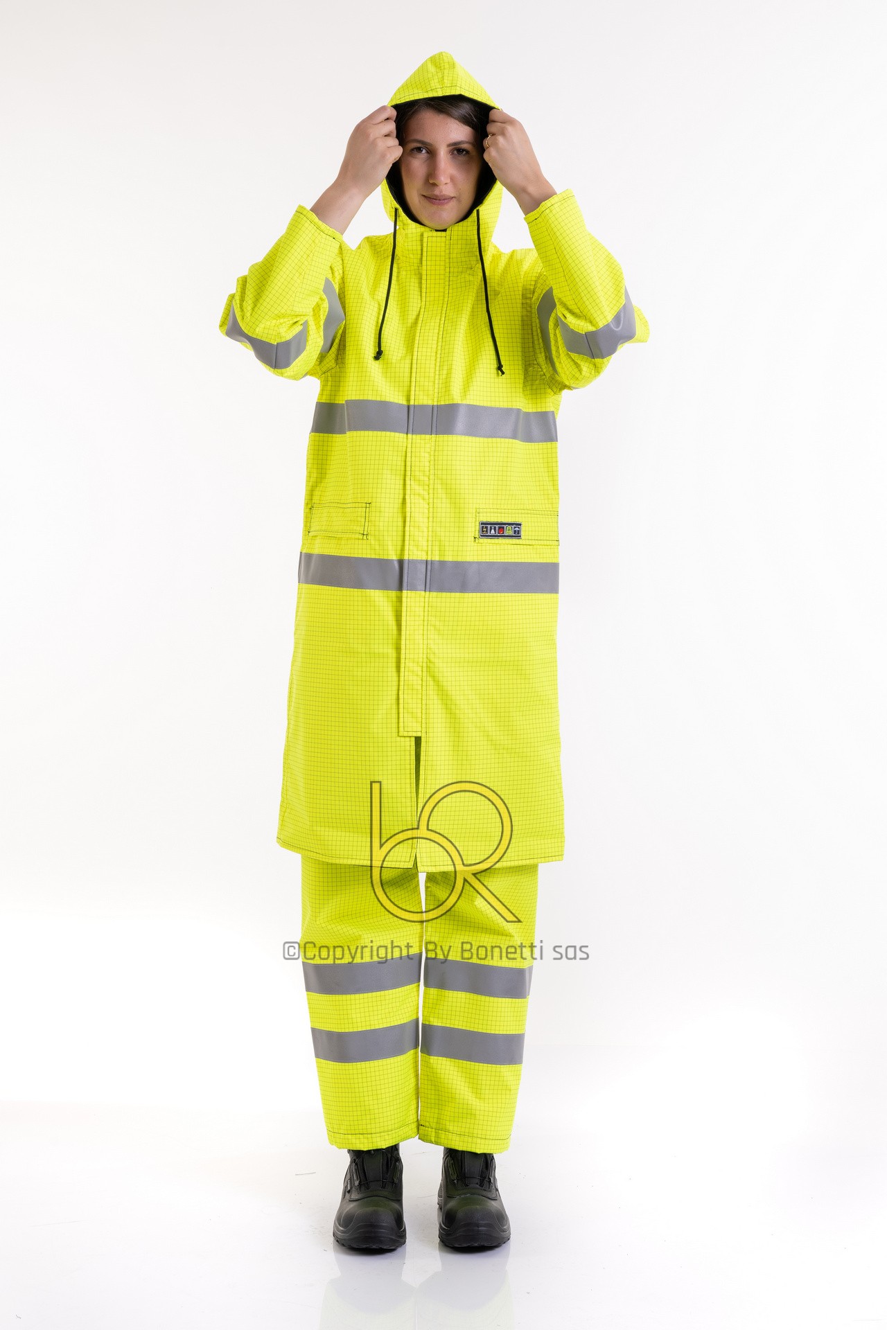 Due bande riflettenti in vita e sulle maniche.