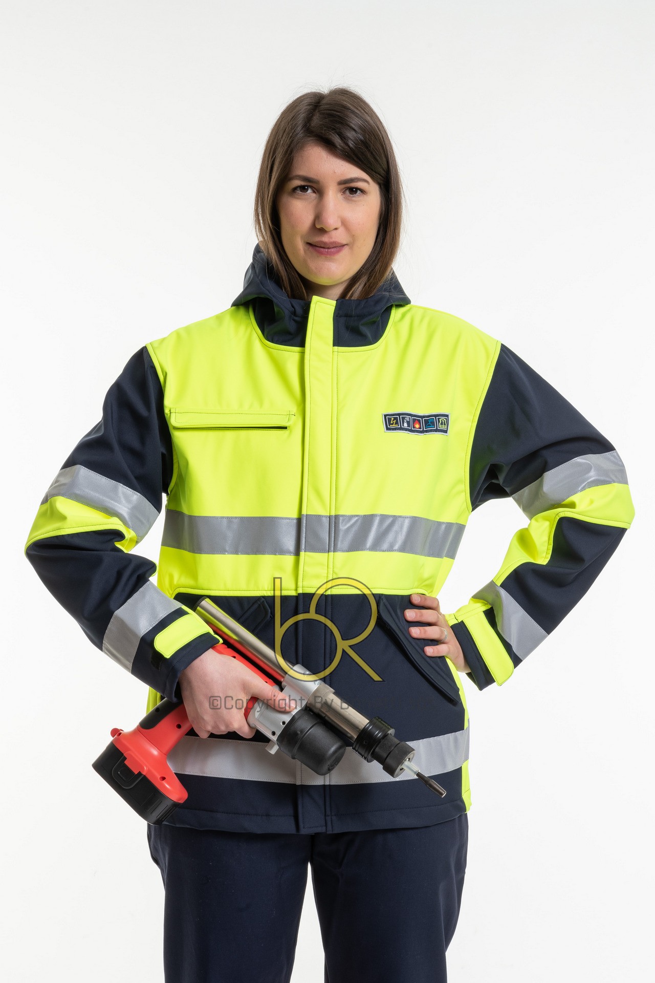 Due bande riflettenti in vita e sulle maniche.